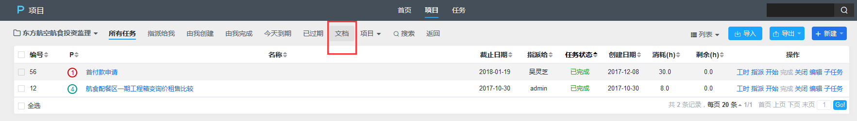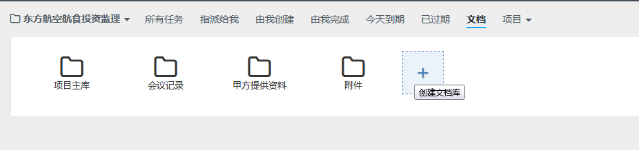在创建项目的同时, 系统会在文档模块中自动随之创建一个项目文档库。点击导航中的文档按钮,即可进入该项目的项目文档库,并可以继续添加新文档库。
