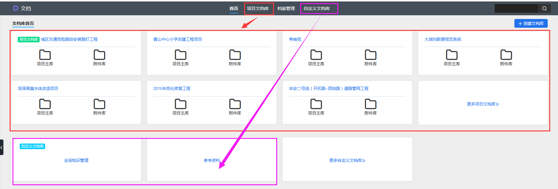 文档首 页罗列的显示项目文档库和自定义文档库,所有的文档都有条不紊地放在相应的文档库中。