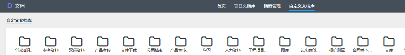 文档库,顾名思义就是专门存放文档的“仓库”,艾米经管系统中用文件夹图标形象地展现。文档库分为项目文档库和自定义文档库两大类。