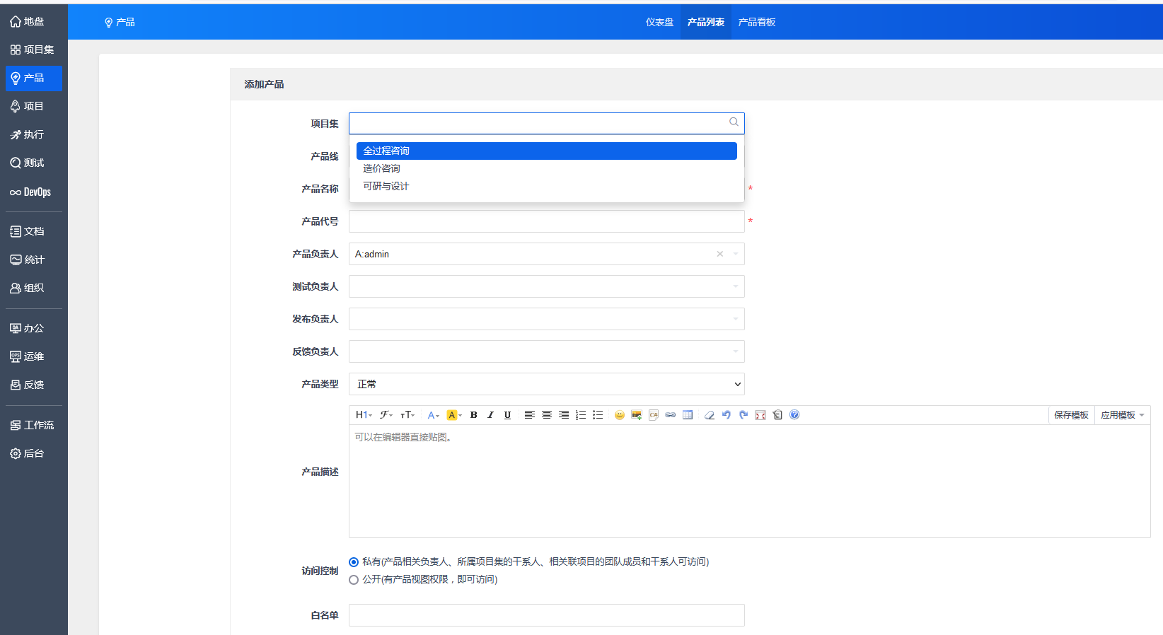 在项管系统中,产品与项目集、项目、执行等是关联的。可以说,所有活动都是围绕产品展开的。