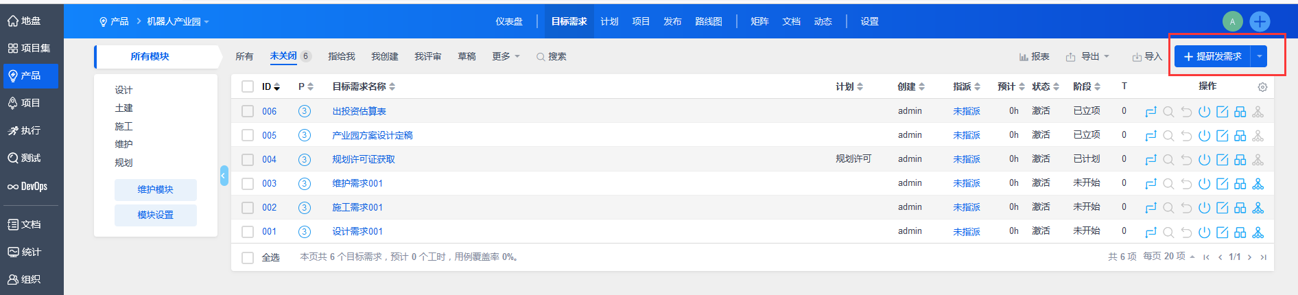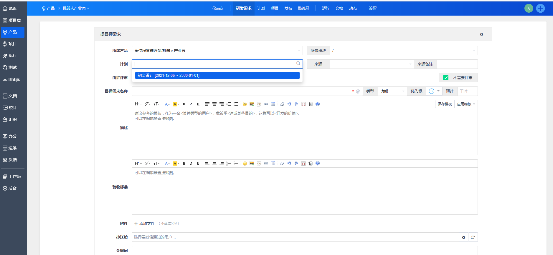 在提目标需求页面,可以选择已有的计划。也可以在计划页面里进行关联。