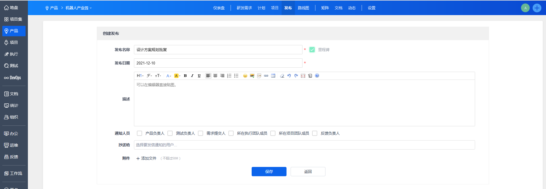 填写发布名称,还可以设置此次发布是否为“里程碑”。