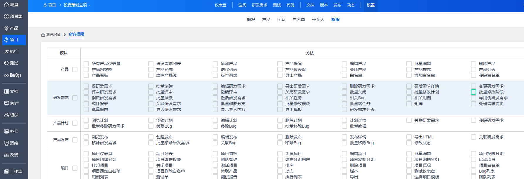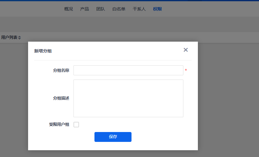 可以添加权限分组,并对分组内用户的权限进行控制。若创建分组时选择“受限用户组”,则该分组成员只能操作禅道内和自己相关的内容。