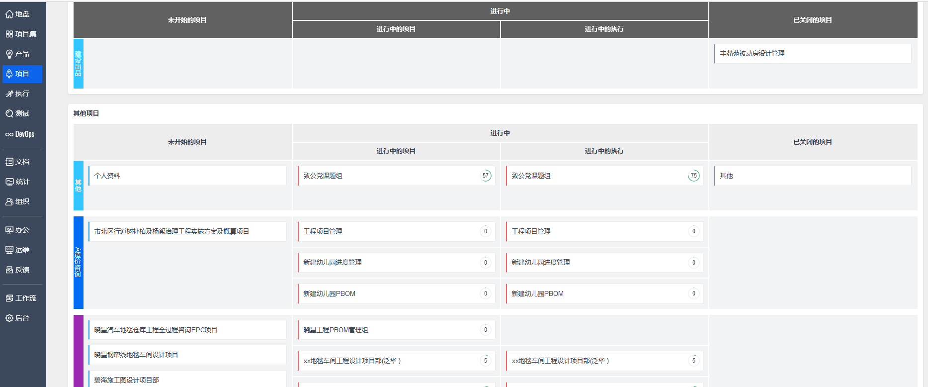 可以通过该功能查看项目和执行的状态。点击项目看板上的对象名称即可直接进入相关页面进行查看。