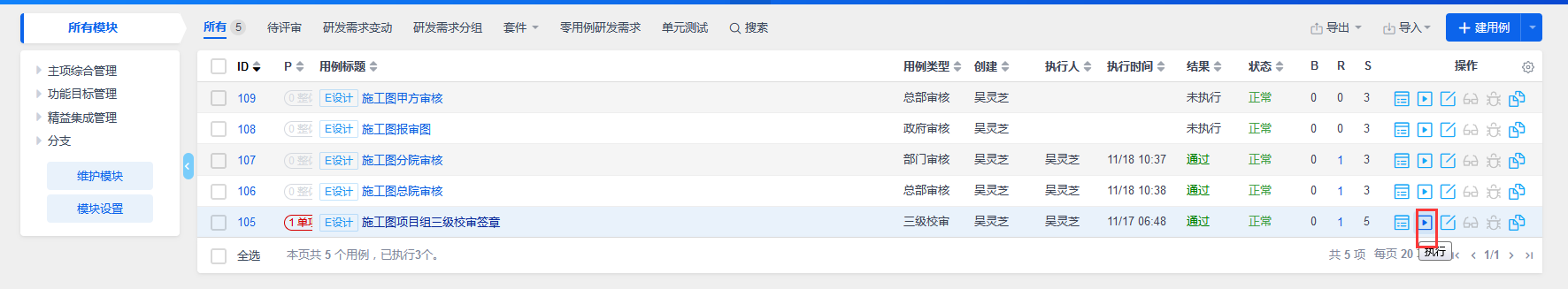 进入执行用例页面。可以选择测试的结果。