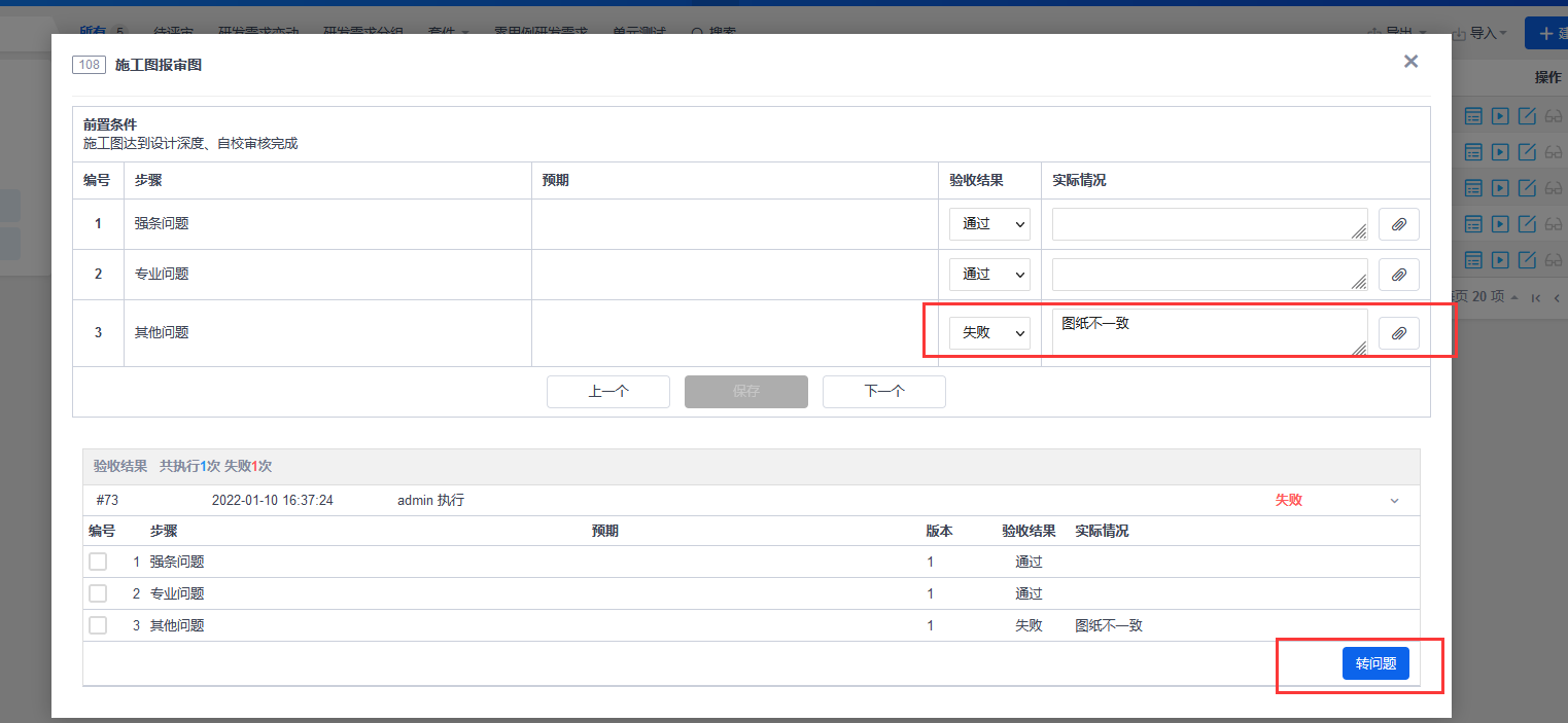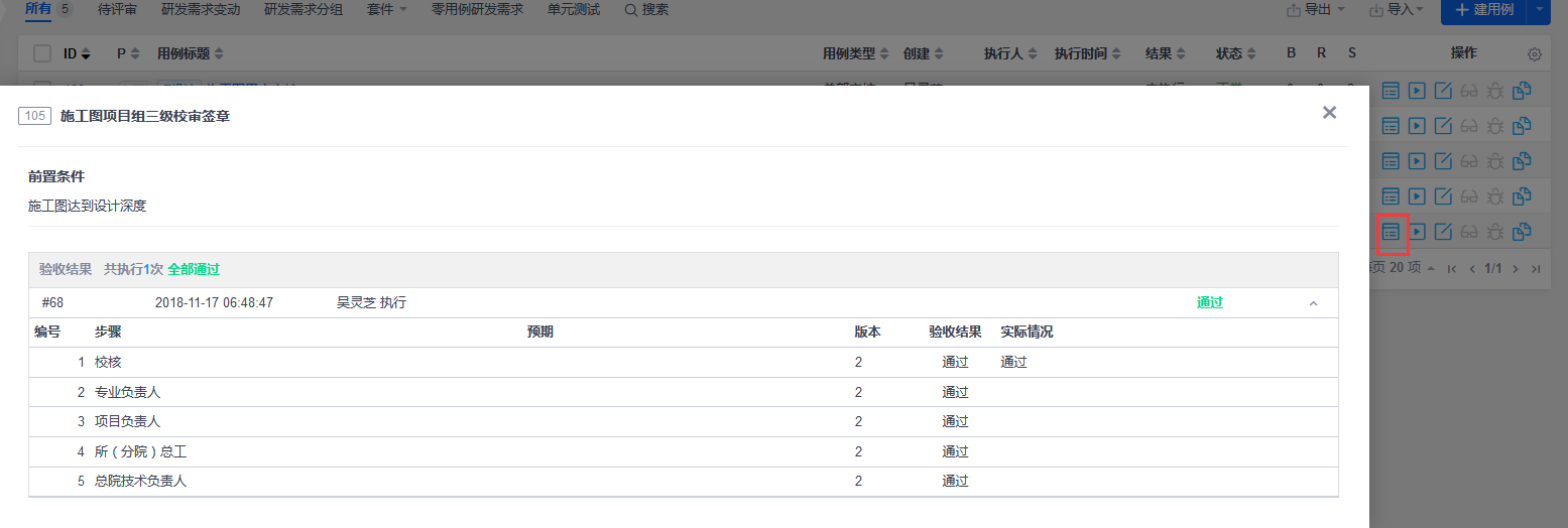 若全部为“通过”,点击“保存”。系统自动打开下一个用例。
