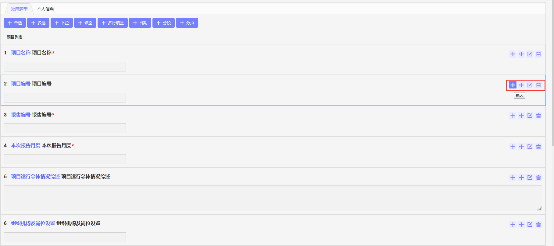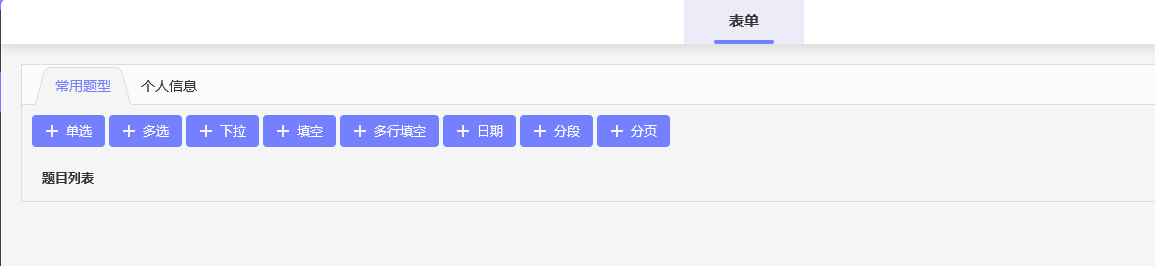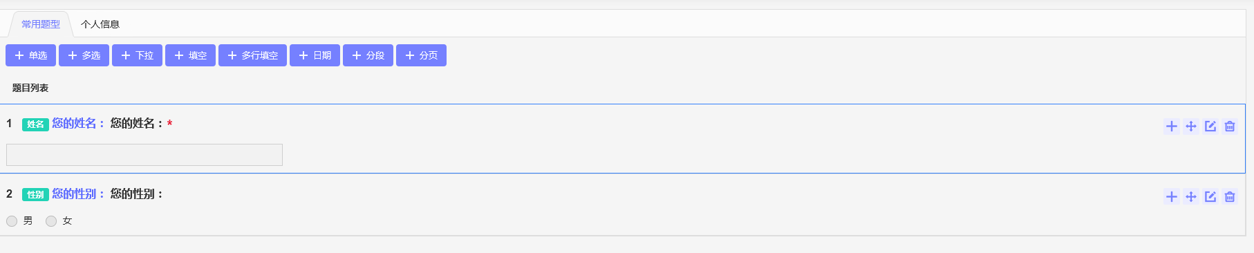 常用题型有:单选、多选、下拉、填空、富文本、日期等