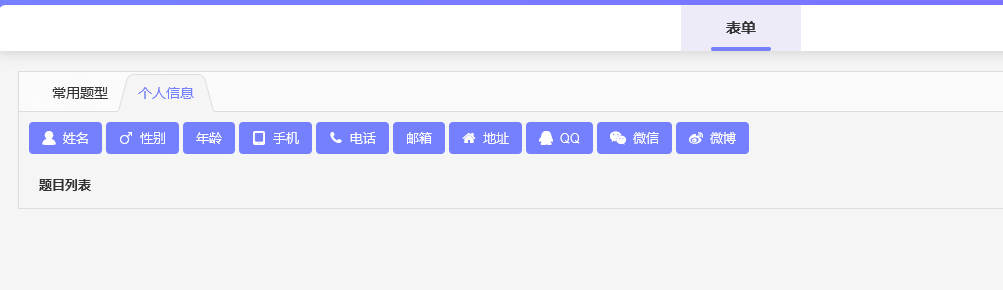 在设计表单页面,可以设计表单需要填写的具体内容, 有常用题型 以及个人信息
