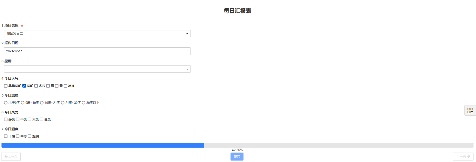 表单填写过程中每填写一题 ,页面底部进度图会相应改变,直到完成提交。