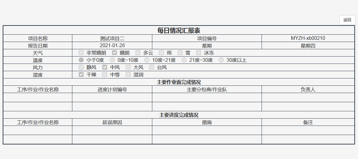 点击制式表格,可以查看当前表单的报表展示模板,以及当前用户的数据。如每日情况汇报表,项目经理月度报告等。
