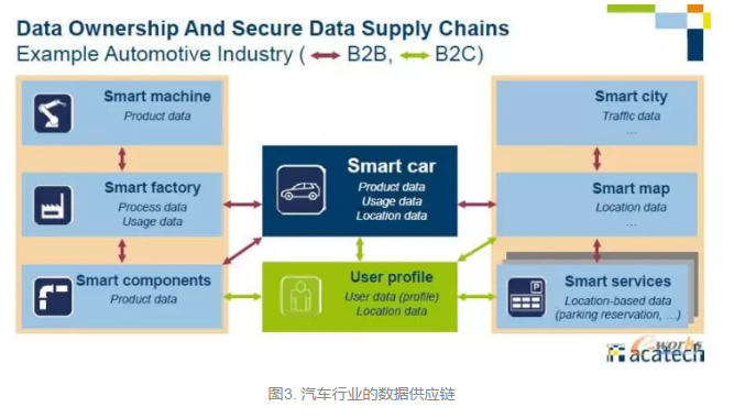 图3展现了汽车行业数据供应链的理念。企业在整个产品生命周期应当打通数据主线(Digital Thread),确保各类产品数据的一致性和正确的数据源。